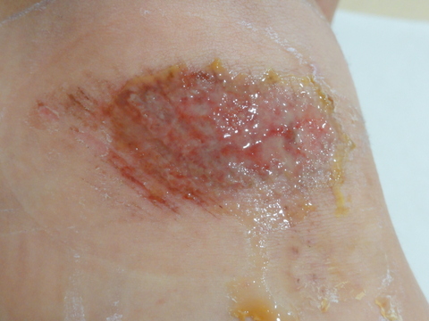 火傷のように皮膚が無くなっていて、膿が流れるくらいのケガだった。